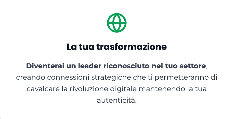 Dalle radici calabresi (una resilienza autentica) alla precisione svizzera (con metodo e risultati), avrai accesso a un approccio unico che connette la tua crescita personale con le opportunità del futuro digitale.